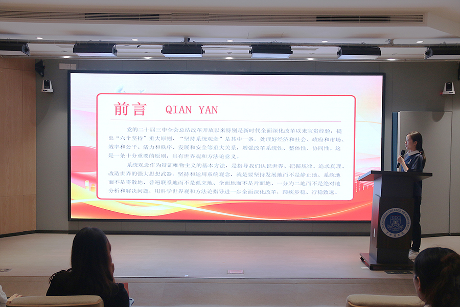 练桐彤以“坚持系统观念”为切入点,深入解读了党的二十届三中全会通过的《中共中央关于进一步全面深化改革、推进中国式现代化的决定》(下称《决定》)。在学习过程中,全体成员深刻认识到“坚持系统观念,处理好经济和社会、政府和市场、效率和公平、活力和秩序、发展和安全等重大关系”。练桐彤强调,处理好这五个重大关系是以习近平同志为核心的党中央在分析新发展阶段内外部环境变化、面临的新机遇新挑战、肩负的新使命新任务时提出的,为推进中国式现代化提供了科学指南。