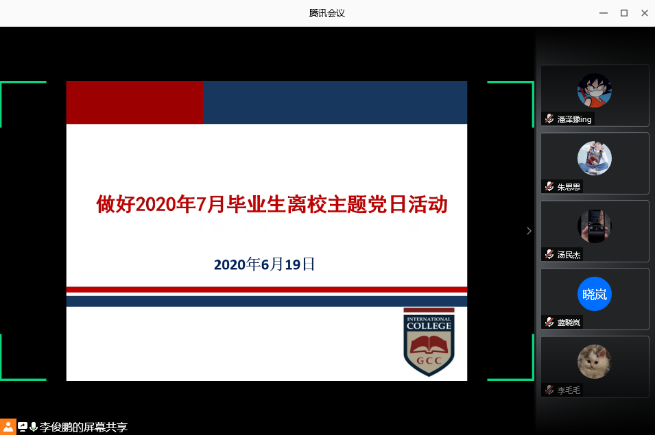 首先,李俊鹏带领全体党员深入学习了2020年全国两会精神,以关键词 “六稳六保”为契入点重点分析了政府工作报告的主要看点,提出把学习贯彻全国两会精神转化为下一阶段学习和工作动力:(一)毫不放松抓好常态化疫情防控;(二)提升就业核心竞争力;(三)要强化责任担当,以务求实效的精神推动公司整体工作。第二个专题中,李俊鹏强调做好意识形态工作,事关党的前途命运,事关国家长治久安,事关民族凝聚力和向心力。并从三个方面进行巩固:一是应牢牢掌握意识形态斗争主动权;二是增强意识形态领域斗争能力;三是落实意识形态工作责任制。会议最后,李俊鹏谈到由于疫情影响,2020届毕业生离校工作任务繁重,鼓励各位党员通过党日活动的形式志愿参与,充分发挥党员的先锋模范带头作用。