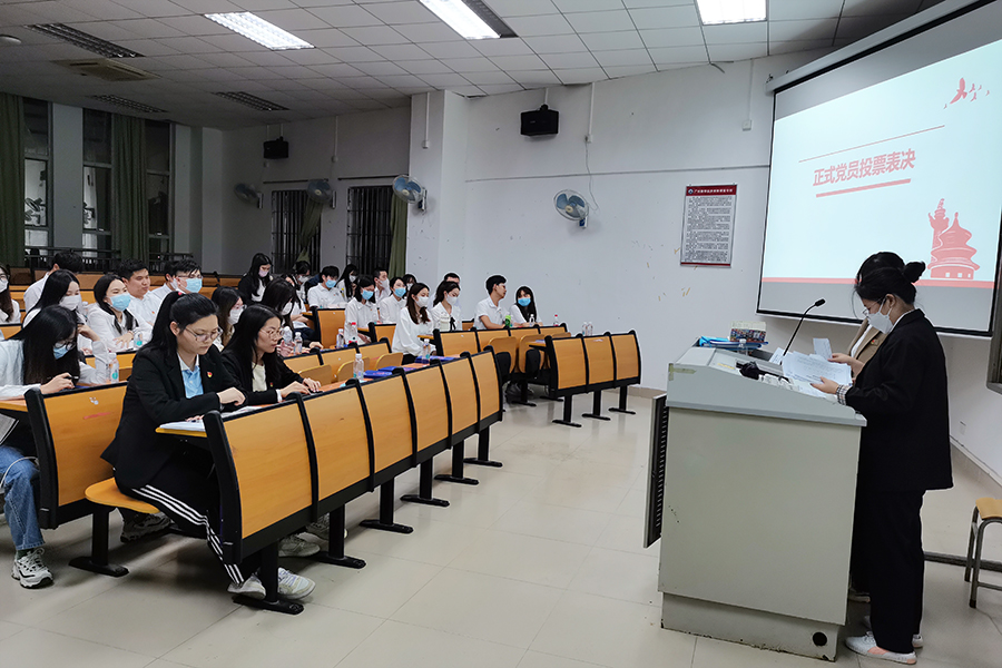 会上,方丽玲等7名发展对象依次上台向党组织汇报对党的认识、入党动机、在校期间表现情况等。入党介绍人客观地介绍发展对象的基本情况,肯定了他们在发展对象考察期间的表现,也对他们提出加强学习、更加严格地要求自己的要求,并对是否同意介绍发展对象入党表明态度。经支部党员充分讨论和投票表决,大会同意接收方丽玲等7名同志为预备党员。