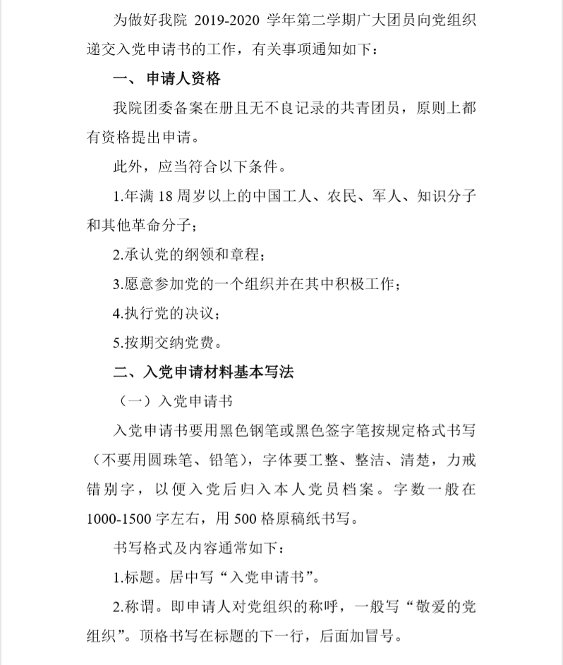 关于 2019-2020 学年第二学期入党申请书提交的通知