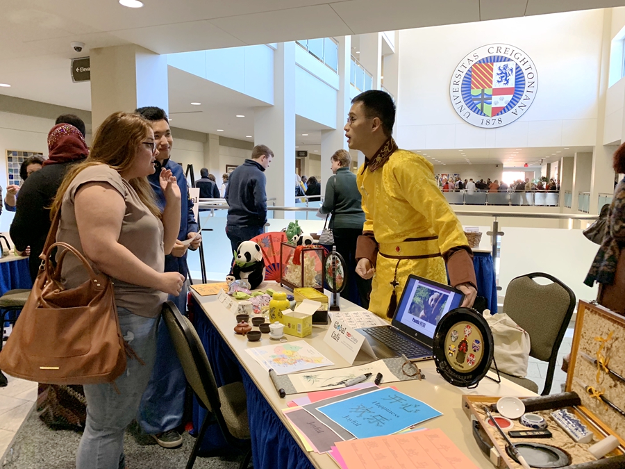 在整个活动过程中,主办方还与贝佛大学员工会一起策划开展了“Global Café”多国文化交流活动,参展国家包括中国、美国、蒙古和墨西哥等。我们的员工尝试通过视、听、味、嗅、触觉向与会者展示中国的传统文化,其中包括了我国的文房四宝、茶饮文化、中式点心等文化元素,同学们身穿中国传统服装,用流利的英语向与会者解说各种传统工艺品,并为观众解答他们提出的对于中国的各种疑问。另一方面,为了拉近与参会者的距离,同学们还准备了十二生肖汉字卡,指导访客们体会中国文字的精华。同学们尽其所能为参加“TEDx Omaha”的观众们带来一场视听盛宴。我们的展台和员工也成为了全场的焦点,被评为全场最佳。
