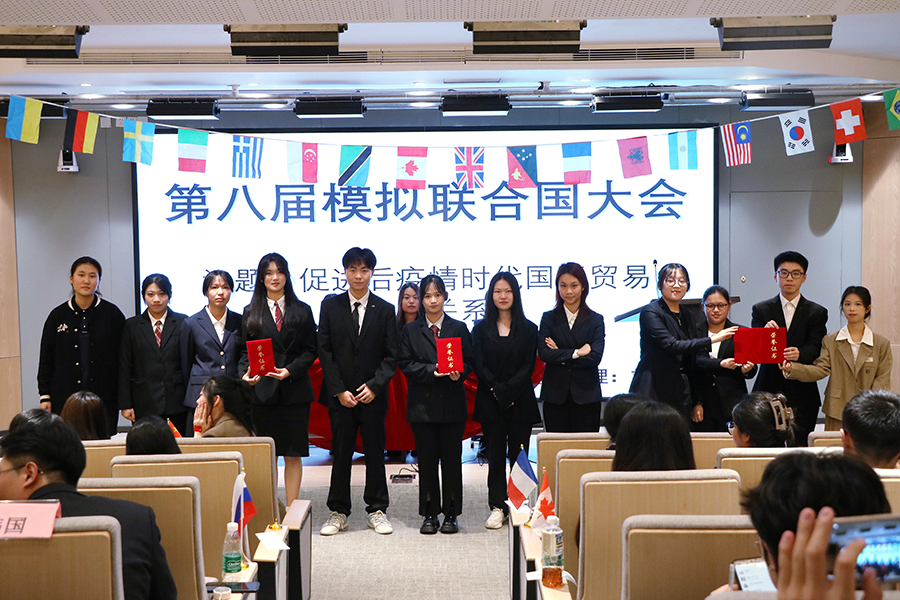 此次模拟联合国大会的两个议题分别为“人工智能的伦理与发展”、“促进后疫情时代国际贸易发展关系”。参会的12个国家代表团深入探讨了人工智能对经济、社会和国际政治的影响,以及后疫情时代国际贸易的挑战与发展。