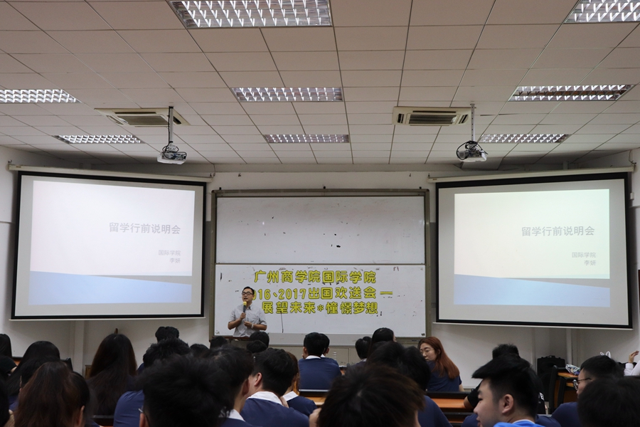 颁奖。会上播放精心为同学们制作的祝福视频,里面有朝夕相处的同学以及挚友想对即将出国的同学们说的话。2017级出国员工代表蓝浩洋、2015级归国员工杨晓晴以及教师代表麦楚林依次发言。