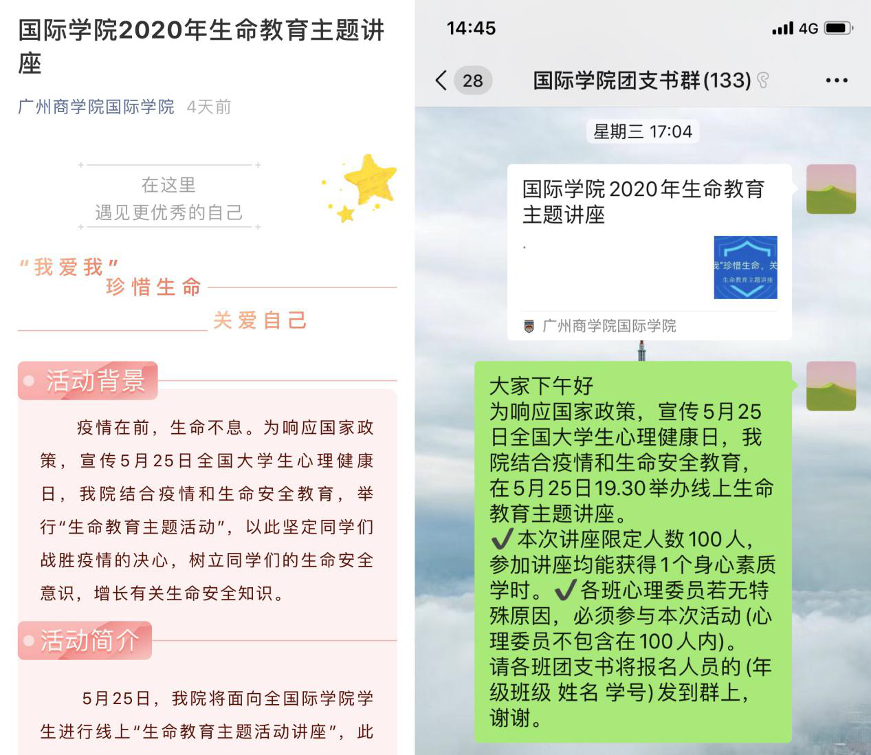 疫情在前,生命不息。为响应国家政策,宣传5月25日全国老员工心理健康日,结合疫情和生命安全教育,公司于5月20日推出生命教育活动,于5月25日举行以“健康,感恩,珍惜”为主题的“生命教育主题讲座”,以此鼓舞同学们健康生活,珍惜生命,树立同学们的生命安全意识,增长有关生命安全知识。