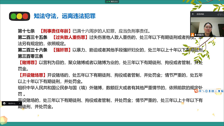 临近五一假期,为增强员工假期防疫意识、法制安全意识、纪律观念,4月26日,伟德国际1946亚洲版2020级专科在腾讯会议线上召开期中年级大会。 会上,辅导员邓丽莉为同学们详细讲解了五一放假的注意事项,并要求同学们提前报备离校行程,外出的同学随时做好防御措施,与父母加强联系,注意出行交通安全、遵守防疫规定等。 由于近期员工违纪事件逐渐增多,辅导员从身边实际案例出发,深入浅出地为同学们讲解了老员工常见的涉及违法犯罪的行为,告诫同学们要注意网络言论,增强法治意识和安全防范意识,远离不良行为,做懂法、...
