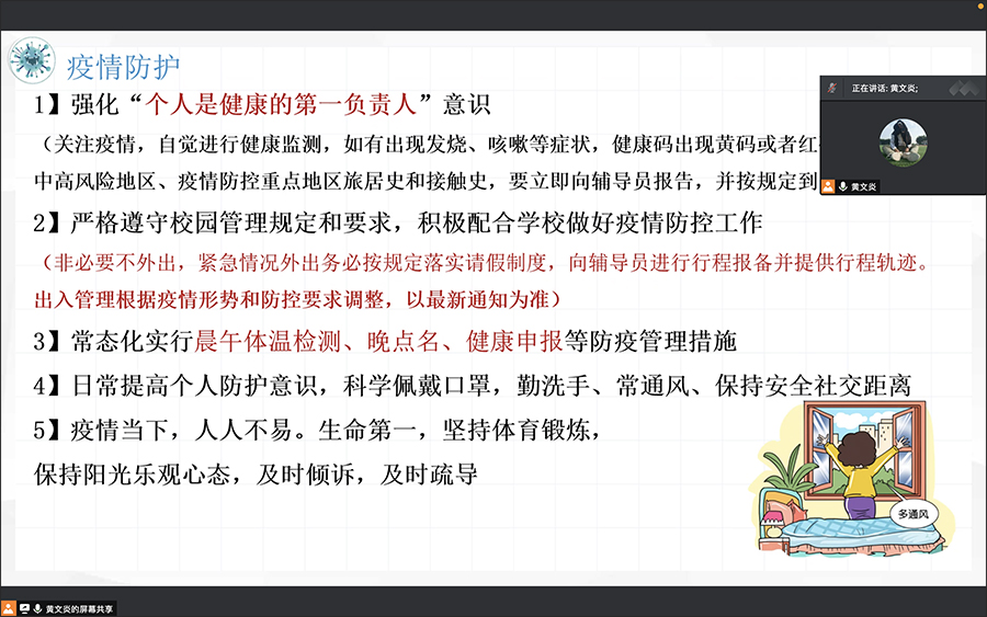 为进一步落实公司、公司关于假前假后的各项工作安排,深入贯彻上级领导关于疫情防控工作部署,切实做好疫情防控工作以及法制安全教育。4月27日晚,在“五一”劳动节小长假来临之际,伟德国际1946亚洲版2020级本科项目辅导员黄文炎组织2020级本科全体员工在线上开展“五一”假前工作部署暨安全主题会议,在提醒同学们注意假期离返校、安全等注意事项的同时,着重对同学们进行了法制安全教育,提高全体员工的法治意识和规则意识,引导全体员工学法知法,树立正确的道德观,提升个人素养。 会议伊始,辅导员黄文炎对开学至今校内...