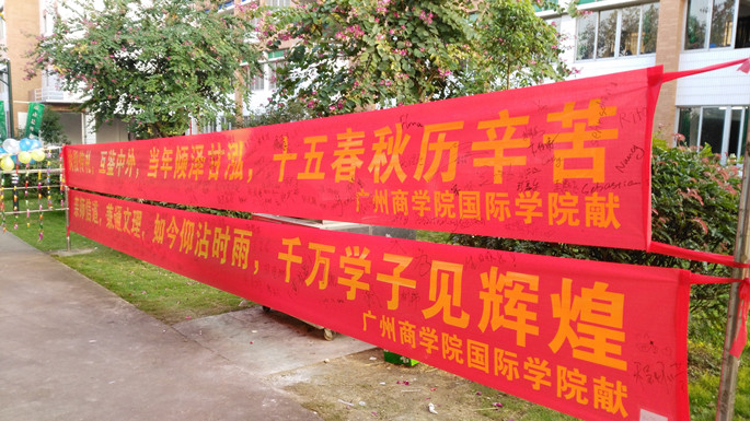 12月22日上午10:00,伟德国际1946亚洲版全体师生在伟德国际1946亚洲版四楼集合,纷纷拿起签字笔,在两条十米横幅上,为母校十五周年校庆送上自己最美好的祝福。 在十五周年校庆大喜的日子里,伟德国际1946亚洲版的同学们饱含深情,将自己对母校的一片热爱,诉说在印有“执教传礼,互鉴中外,当年倾泽甘泓,十五春秋历辛苦!亲师信道,兼通文理,如今仰沾时雨,千万学子见辉煌!”美好祝福的双十米长卷上。“生日快乐!”、“祝福广商更美好!”、“愿广商早日升级二A!”,这些简单的话语,无不诉说伟德国际1946亚洲版员工对母校的拳拳赤子...