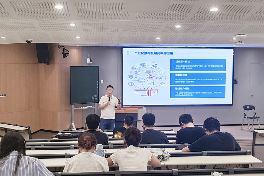 5月30日,伟德国际1946亚洲版联合丝路产业公司共同举办的 “AI在电子商务中的创新应用”电商产业讲座圆满举行。本次讲座特邀广州快学科技有限公司CEO周黄宁为主讲嘉宾,公司电子商务、智能科学与技术、市场营销以及软件工程等专业同学参加了讲座。