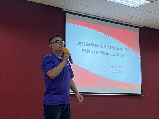 本科毕业设计(论文)和毕业实习是实现培养目标的重要教学环节,有助于培养员工综合运用所学知识、提升员工综合实践能力,强化创新意识。在公司的统一安排和部署下,2021年11月4日下午15时50分,伟德国际1946亚洲版在一教206课室召开关于2022届本科毕业设计(论文)工作暨本、专科毕业实习动员大会。伟德国际1946亚洲版副经理龙海英、公司党总支书记李俊鹏、专业教研室主任、全体本专科指导教师、毕业班辅导员、教务员、2018级本科及2019级专科全体员工参会。会议由教研室主任麦宗琪主持。