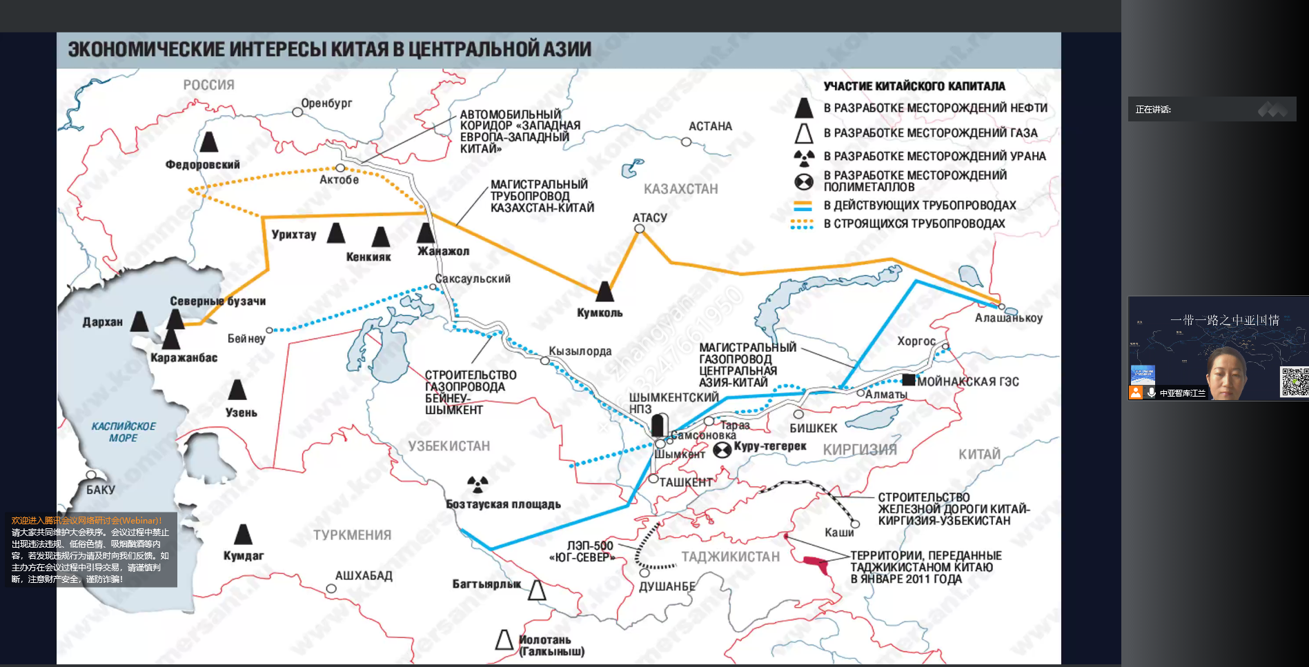第六期沙龙主题为一带一路之中亚国情,由江兰博士主讲。江博士结合自己的著作《“一带一路”之中亚资源战略合作前景的战略和思考》,提出目前矿产资源配置呈现全球化趋势,国际矿产资源竞争激烈,我国的能源对外依存度还很高。在对中亚国情及地缘利益政治格局分析的基础上,分别介绍哈萨克斯坦、吉尔吉斯斯坦、塔吉克斯坦、乌兹别克斯坦、土库曼斯坦等五国资源、能源开发现状,解析与中亚优势资源合作前景,比较中亚矿产资源投资环境和投资风险,并对中亚资源、能源战略合作模式提出思考及建议。