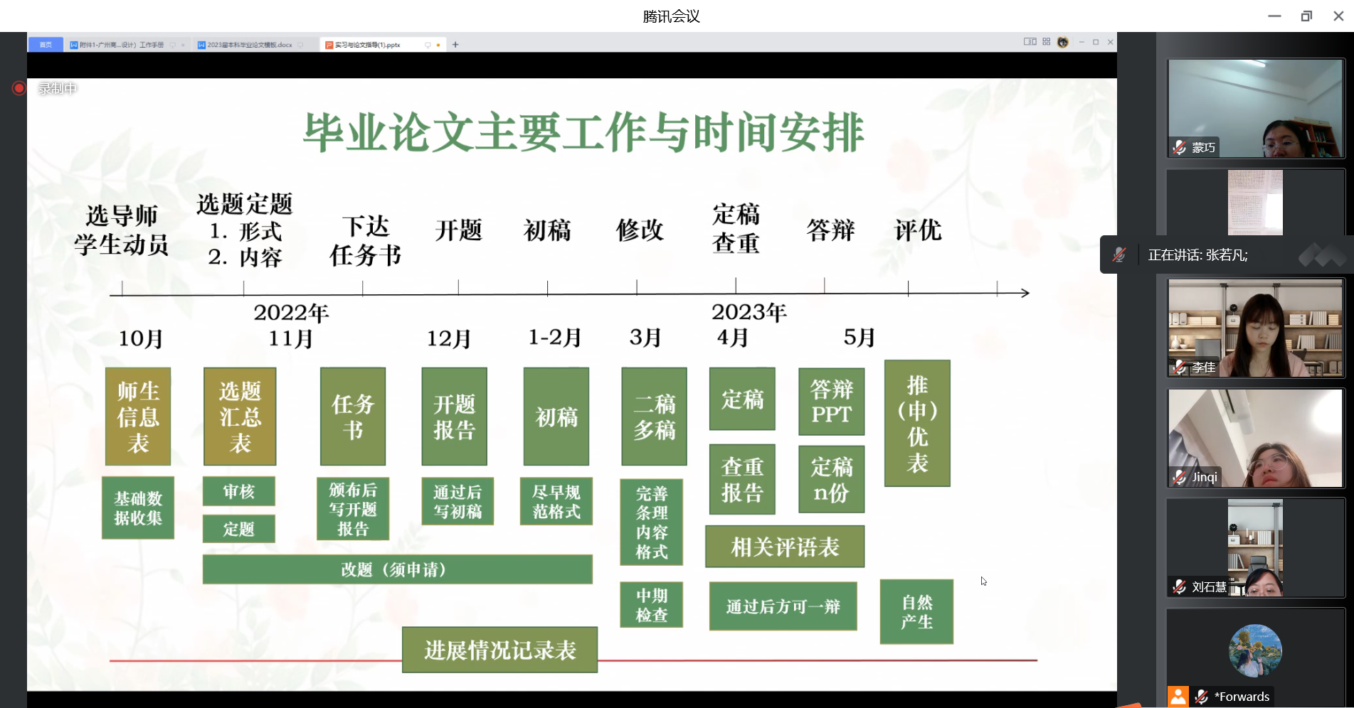 教研室主任张若凡强调了撰写毕业论文的重要性和严肃性,并从论文选题、资料收集、撰写过程、格式规范、提交材料,重大时间节点等方面作了详细讲解,并再三强调不宜“大题小做”,鼓励“小题大做”和“旧题新做”。教研室主任陈佳暄就本专科毕业实习方案进行详细的讲解,从实习安排、员工实习打卡、提交材料、教师跟踪等方面一一进行阐述,以及对员工邦的使用进行简单说明。