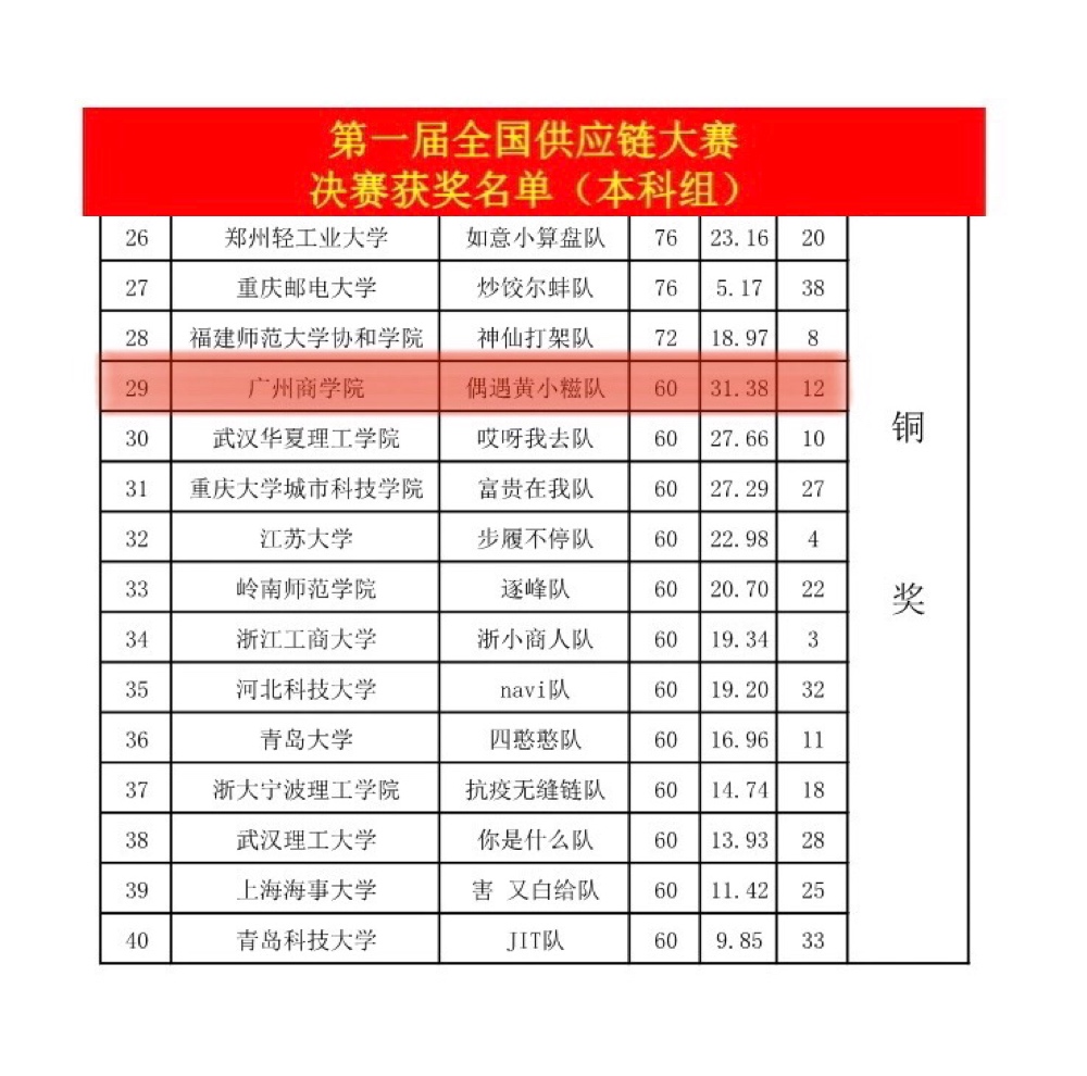 第一届全国供应链大赛的决赛本科铜奖