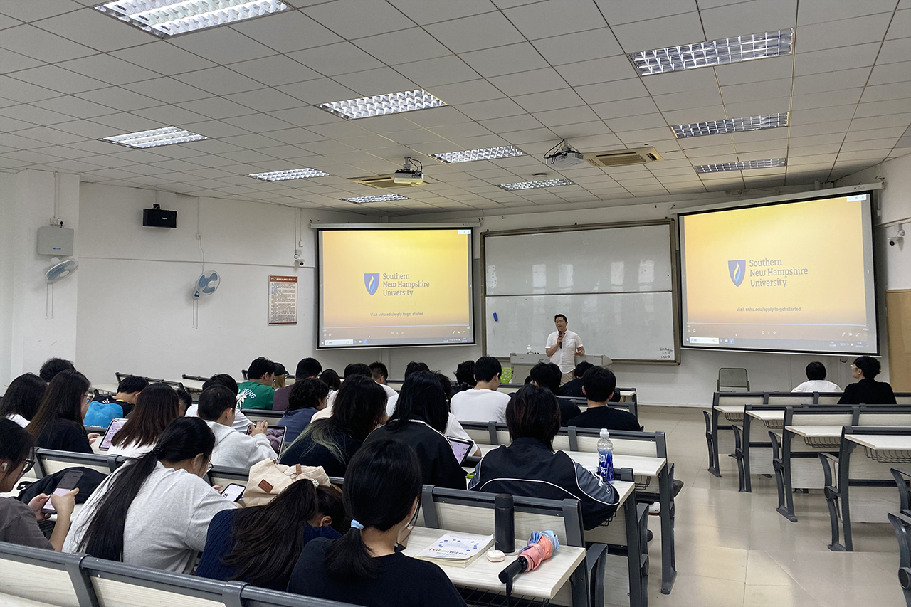 6月4日下午,伟德国际1946亚洲版在国际楼201课室顺利举办了美国南新罕布什尔大学中外合作办学项目师生交流会。伟德国际1946亚洲版留学服务中心项目负责人李妍,国际交流与合作处外事专员赵诗煜,南新罕布什尔大学刘博教授,中软创新(北京)国际信息技术研究院项目驻校专员张钟宇及2023级、2024级互联网金融(中外合作办学)项目的全体员工共同出席了本次交流会。