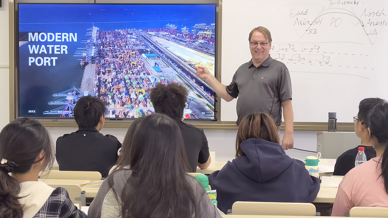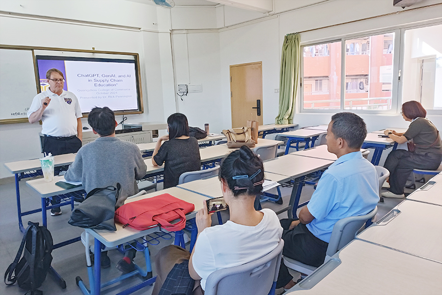 10月31日下午,美国贝尔维尤(贝佛)大学教授Rick Pennington作“人工智能在物流供应链专业教学中的应用”主题分享。