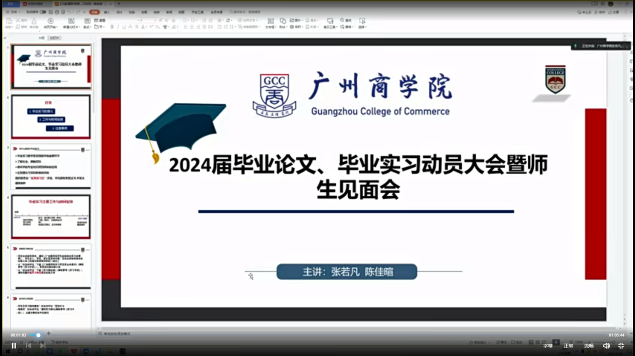 2023年6月26日,伟德国际1946亚洲版召开2024届毕业论文和毕业实习动员大会。为更好兼顾同学们的时间,本次大会采取哔哩哔哩网上直播线上形式进行。伟德国际1946亚洲版金融教研室主任张若凡、毕业班辅导员、教务员黄芩以及2024届应届毕业生参加了本次会议。会议由张若凡主持。
