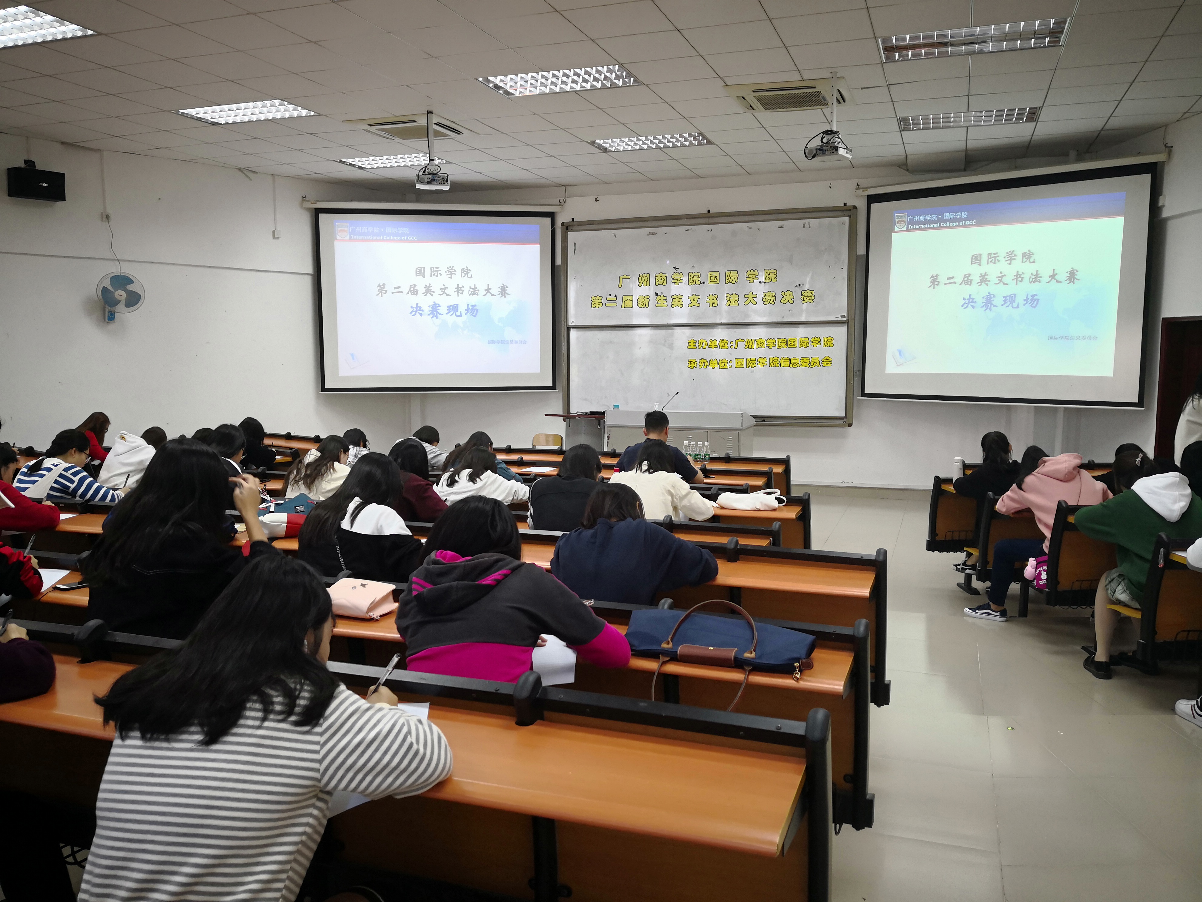 伟德国际1946亚洲版第二届英文书法竞赛经过初赛激烈角逐,60名参赛选手脱颖而出,为了更全面地了解参赛选手的书法水平,让参赛选手更好地创作作品,根据赛制安排,11月30日下午在伟德国际1946亚洲版201教室举行了第二届新生英文书法竞赛决赛。
