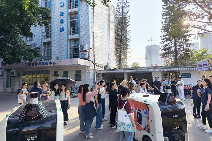 入学教育结束后,同学们在黄文炎和志愿者们的带领下再次深度游览了广商校园。同学们依次参观了公司的学术交流中心、员工服务中心、小东湖、菜鸟驿站等,感受了广商优美的环境和便利的生活设施。在游览校园的过程中,同学们主动向学长学姐们请教问题,表现出对新学习生活的满满期待。