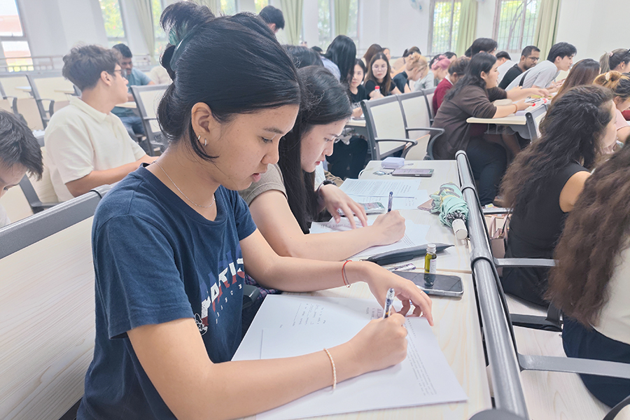 入学第一课环节,陈茜和黄文炎介绍了涉外法律法规、公司规章制度、安全教育、证照管理、医疗保险、公寓管理等要求,详细讲解了学业、校园活动、健康及住宿等各方面的注意事项,确保新生们能够尽快适应新的学习环境和生活节奏。随后,国际生签署了安全责任书,承诺将遵守中国的法律法规,遵守公司的规章制度,主动参加安全教育,不影响校园秩序,重视个人安全,并尊重他人。