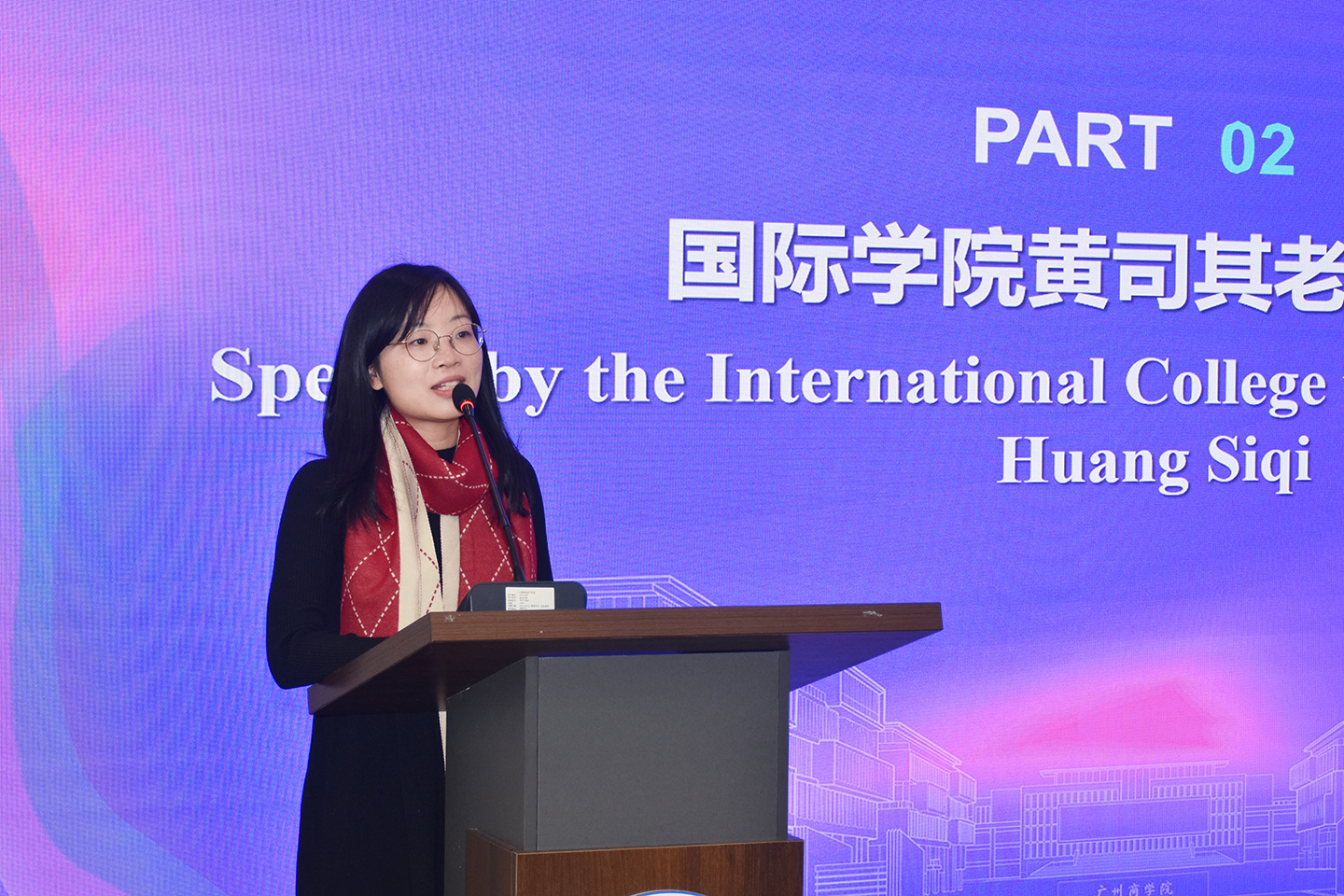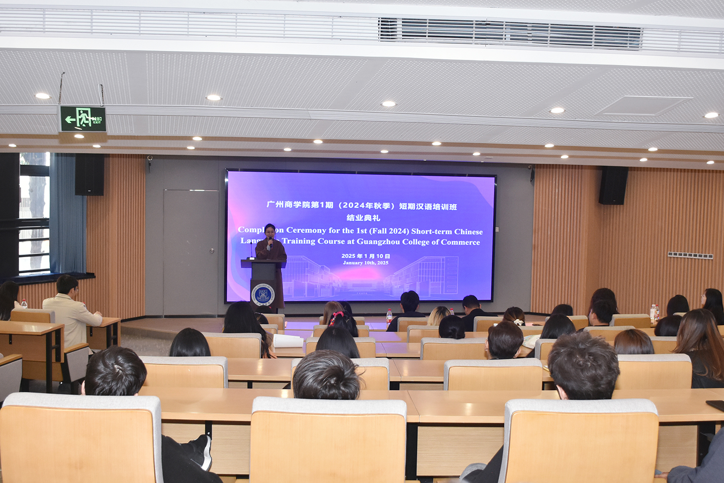 短期汉语项目课程负责人黄司其作为教师代表发言,她深情回顾了与同学们共同度过的美好课堂时光,并表示从同学们最初的生涩发音到如今流利表达的过程中,同学们付出的每一滴汗水、每一份坚持,都被教师们看在眼里、记在心中。