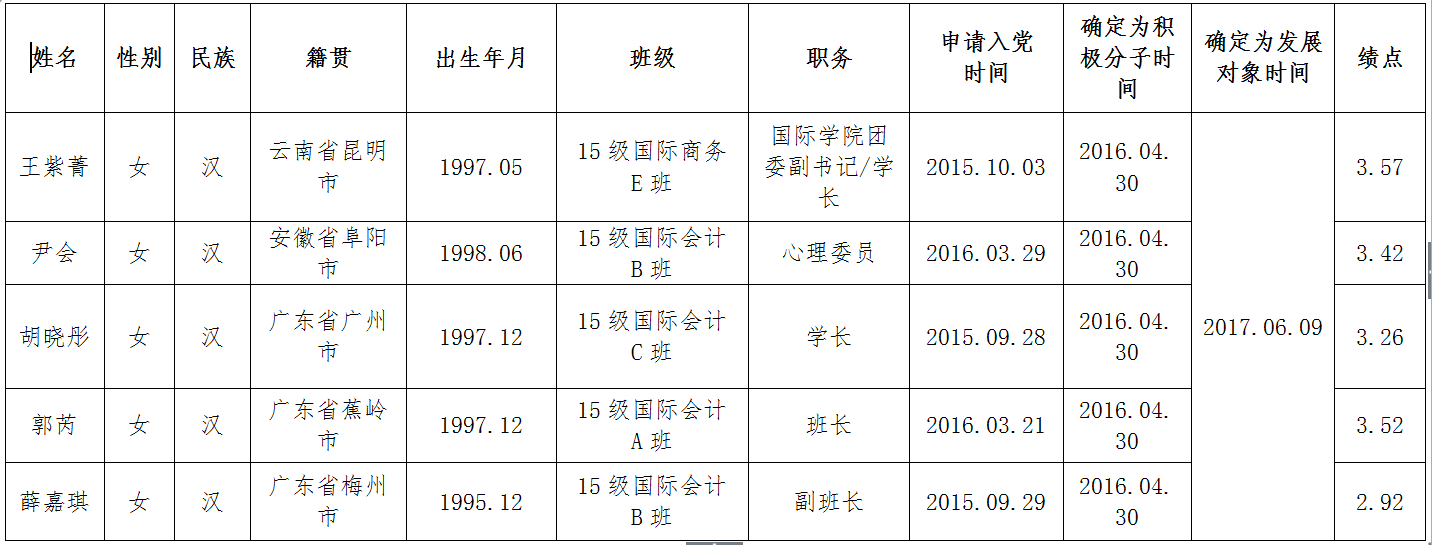 2017-2018学年第一批中共预备党员公示