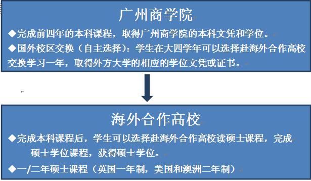 伟德国际1946亚洲版和英、美、澳等多国的知名大学达成“学分互认,课程共建,本硕分段教学”的合作,本科双专业创新班的员工在伟德国际victor1946完成上述3—4年本科课程后,可“4+1”中英本硕连读模式,或“4+2”或“3+1+1”中美本硕连读和中澳本硕连读模式,升读海外合作高校的硕士,用更短的时间更经济的方式修读名校的硕士学位。