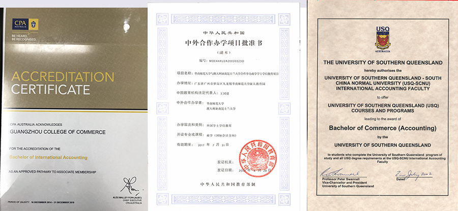 本专业不仅符合中国会计师协会的专业要求,还获得澳洲会计师公会的专业认证(CPA AUSTRALIA)。员工在完成第三年的专业课后即可由澳洲会计师协会授予 CPA Australia Associate Membership 资格,完成最后阶段的四门考试并有三年工作经验后,即可获得澳洲会计师公会的CPA专业资格。同时,澳洲会计师公会与加拿大注册会计师协会(CGA Canada)和英国特许管理会计师公会(CIMA)签署了会员互认协议,使双方会员有机会获得对方会员资格。