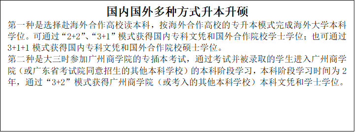 - 中外学分互认,课程中西兼容,国内国外多模式衔接的专本连读;