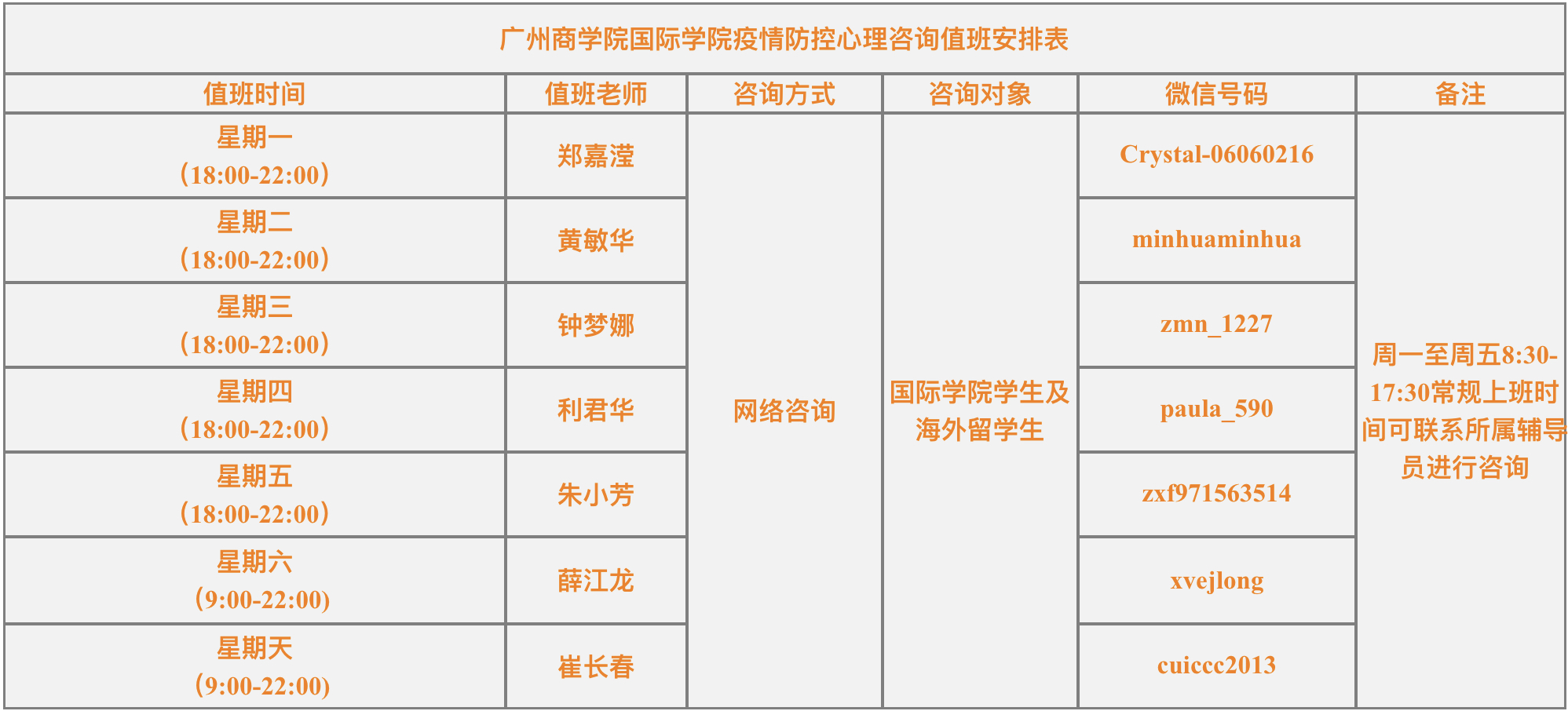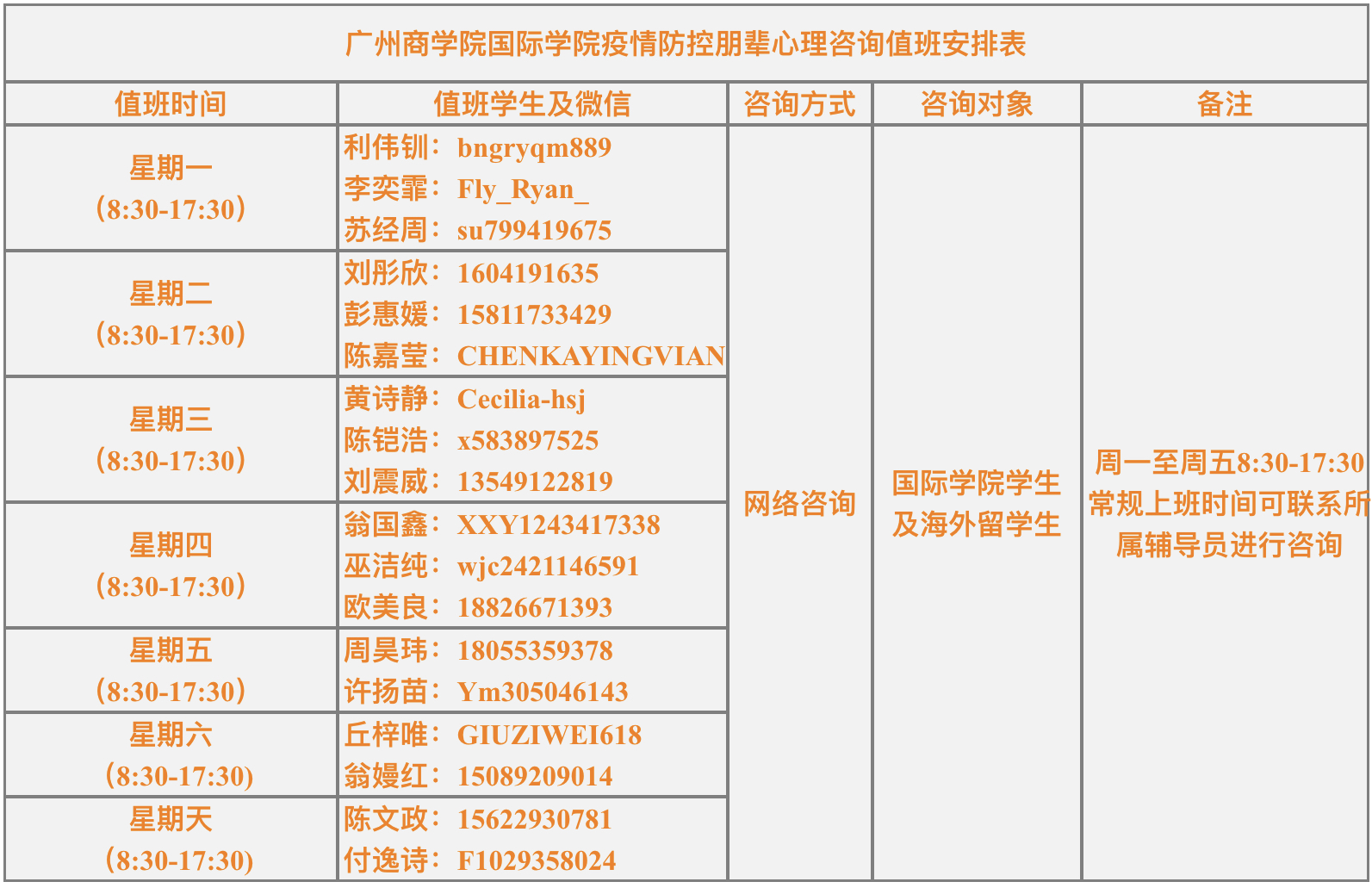 如果有需要咨询的同学,可以根据时间通过以下的方式进行添加咨询。我们要保持积极情绪与阳光心态,构筑坚实的心理防线。寒冬总会过去,春天一定会到来。待春暖花开时,我们国院再会。