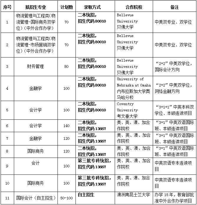 伟德国际victor1946经教育主管部门批准或报备的中外本科双学位项目在广东省的高考招生实行单独的招生代码80010, 二本统招。目前,公司与3个海外高校合办作,举办中外本科双学位的项目。