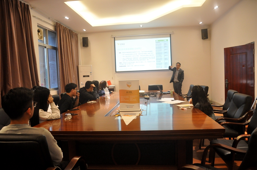 会上,仲铭锦对Adam Lam的到来表示热烈欢迎,并简要介绍了华澳项目员工的基本情况。Adam Lam介绍了华澳项目的学习要求、USQ学术英语课程、USQ新资讯,并和员工一对一交流,对项目员工进行一年一度的回访,对其学业提出指导建议。