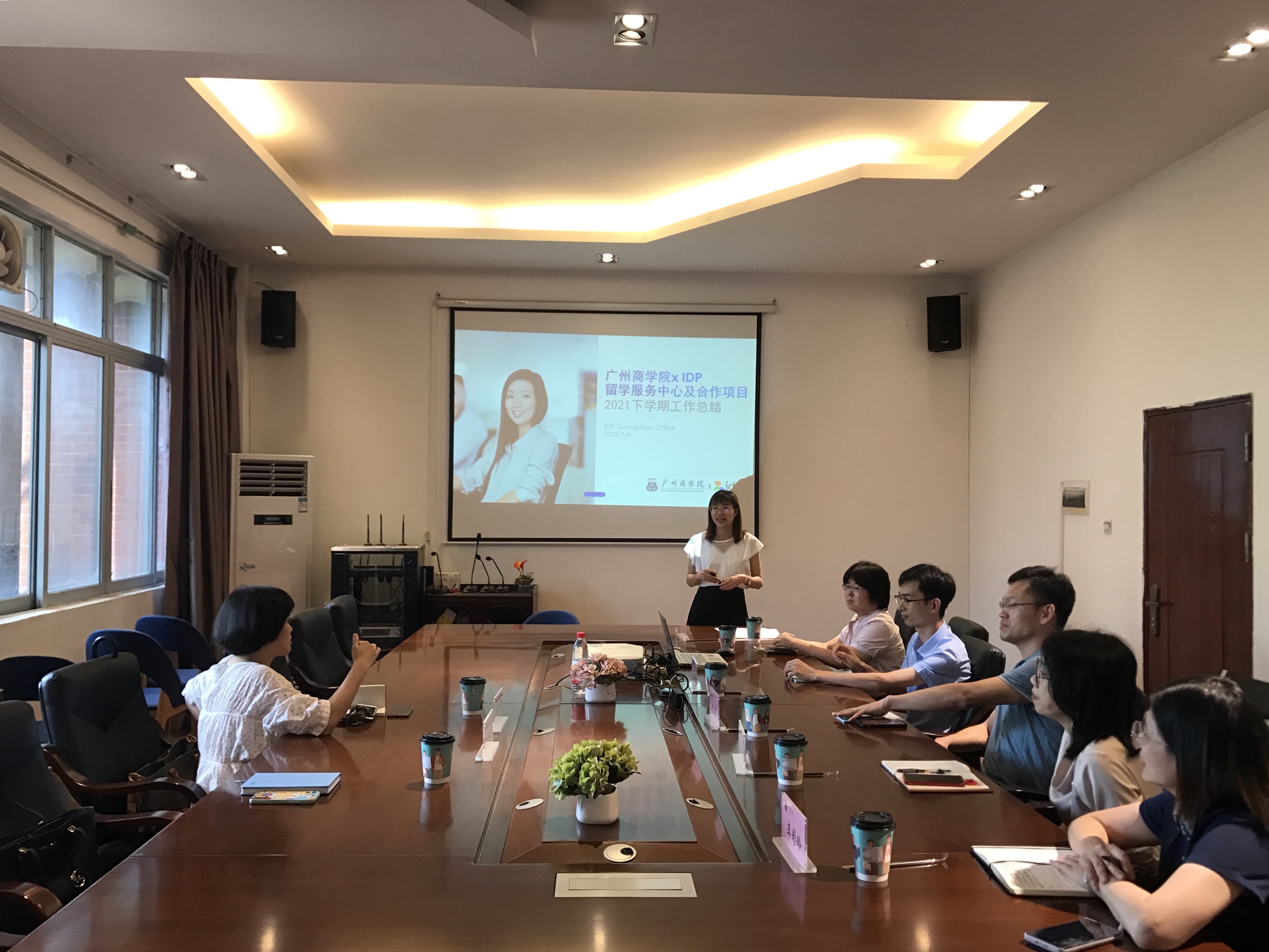 郭航对IDP的工作总结表示认可及感谢,希望下学期能够通过双方的共同努力,促进合作项目顺利开展,扩大广商国际教育发展规模,为员工提供多元化的出国留学机会。
