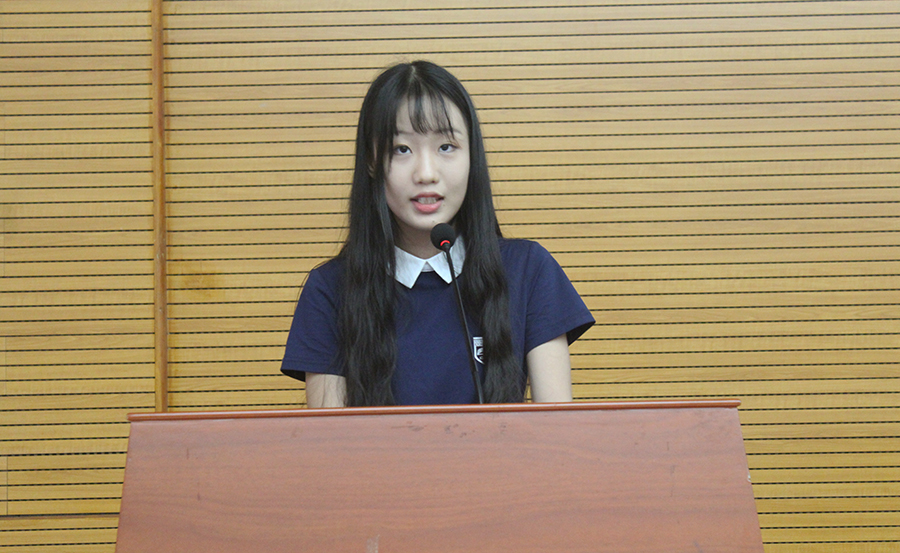 2017级刘香玉同学作为新生代表发言。在未来的老员工活中,她希望自己和全体新同学们能尽快适应老员工活,和同学们团结友爱,树立好适合自己的大学目标;在学习上尊师肯学,持之以恒;在生活上严于律己,养成良好习惯,做一个讲文明、有修养、形象好的广商人。