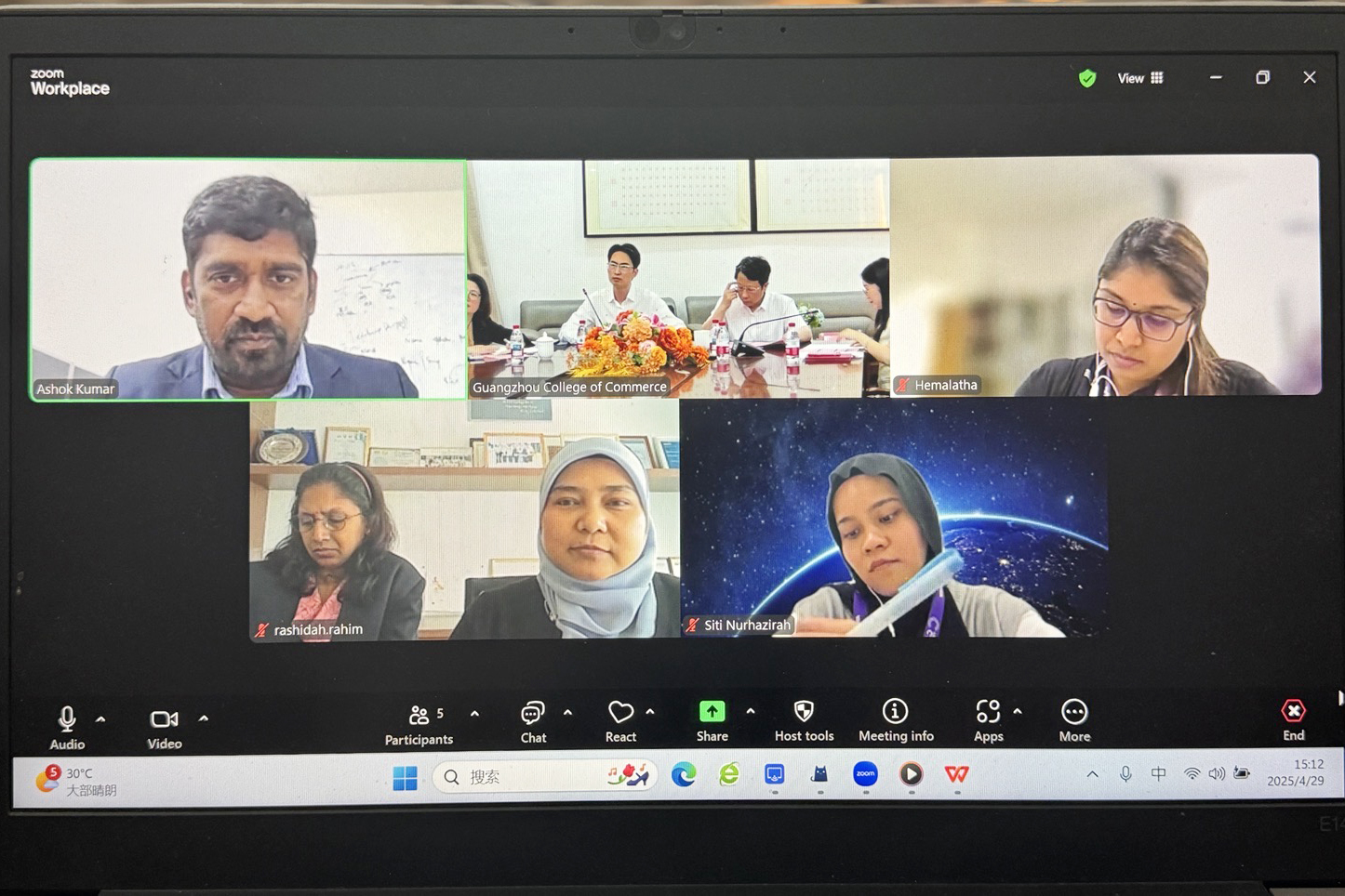 4月29日,公司与马来西亚赛城大学举行线上合作会议。赛城大学研究主管Ashok Balaraman博士、排名与分析部门经理Hemalatha Pannir Chelvam、合作伙伴关系中心经理Nor Rashidah Binti Abdul Rahim等代表,公司副董事长熊建文、伟德国际1946亚洲版副经理洪振华、经理助理李彩玲及国际交流与合作处教师代表出席会议。