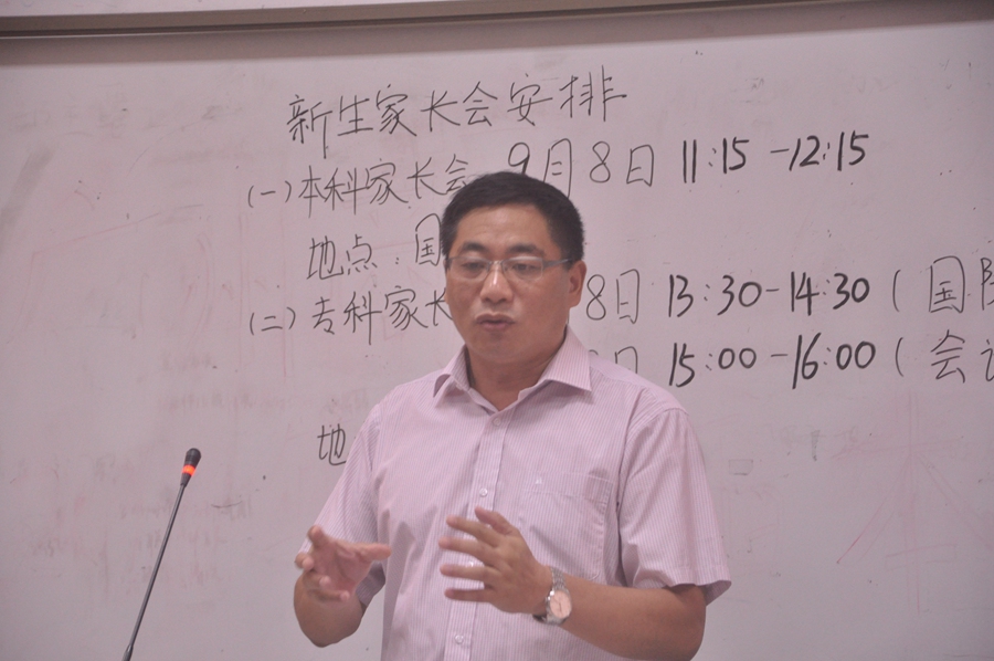 9月8日,公司伟德国际1946亚洲版在201教室分别召开了本科项目、专科国际商务专业、专科会计和商务英语专业三场次家长会。公司副董事长张忠福,伟德国际1946亚洲版经理仲铭锦,副经理李国庆、唐丽峰,党总支书记李俊鹏,教师代表程华明、黄小娟、蒙巧、黎倩茹、麦楚林、钟琳钰、张博,外教代表Darryl Robert、MD Shah Newas 、Diane Louise Chan,外事专员黄明珠,辅导员王相忍,以及2018级全体新生家长、部分新生参加了家长会。家长会由李俊鹏主持。