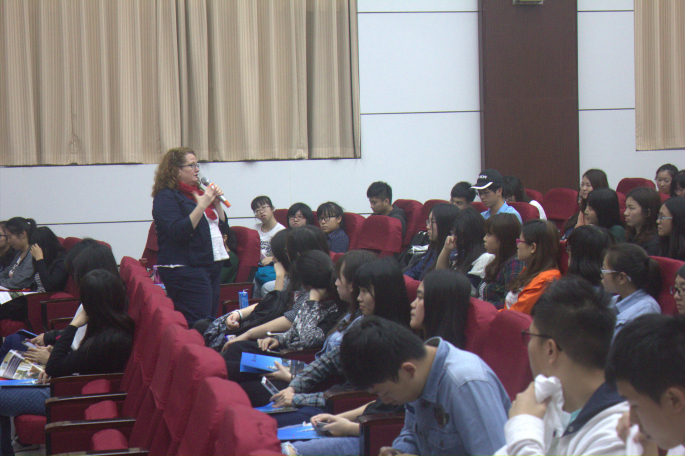 会后,Susie Lambright在图书馆报告厅进行国际合作项目宣讲。会计系主任成慕杰、艺术系主任林木森,会计系党总支书记李锦堂、外语系党总支书记徐超,伟德国际1946亚洲版以及各系约200名员工出席了宣讲会。她介绍了DBU的办学历史、团队建设、教学特色、校园地理环境和入学要求等基本情况,详细讲述了两个项目的合作模式、合作内容与项目特色,她专门从美国带来了精美的小礼品与同学们互动,就所讲述的内容进行提问抢答,气氛十分融洽。