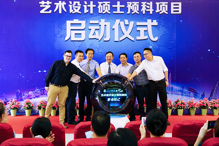 5月11日上午10:30,公司艺术设计硕士预科项目启动仪式在图书馆报告厅隆重举行。公司董事长黄弢,党委书记吕泉荣,常务副董事长贾超,广州市越秀区文联主席莫振山,广州市中小学美术专委会副理事长陈泽勉,CIAD广州执行董事罗小军,深圳当代跨媒体艺术有限公司(CIAD)CEO伦宇翔,英国皇家艺术公司研究生预备课程负责人Jim,项目各方代表,公司相关职能部门领导和伟德国际1946亚洲版及艺术设计公司师生代表出席了本次活动。启动仪式由公司国际交流与合作处处长郭航主持。