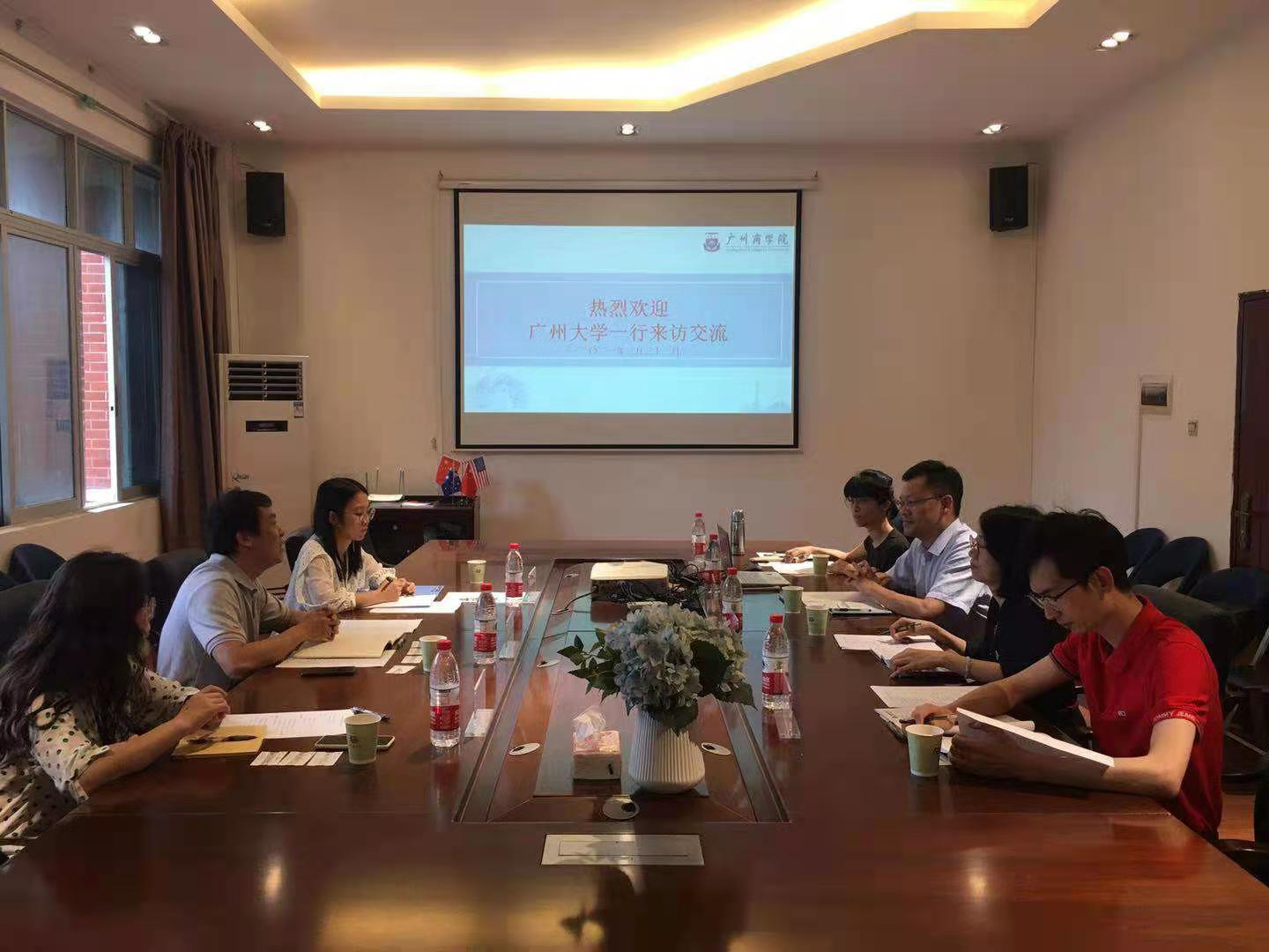 2021年3月31日下午三点,广州大学管理公司经理助理、中法合作项目主任王锐一行来公司交流,会议在伟德国际1946亚洲版202举行。公司国际交流与合作处处长、伟德国际1946亚洲版经理郭航,教学副经理龙海英,办公室主任洪振华,教研室主任麦宗琪在会议室与王锐一行举行会谈。