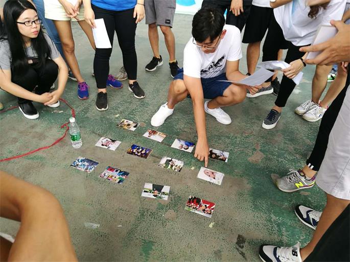 接着,学长们来到足球场参加户外体验式拓展活动。他们被分成六组,进行“以讹传讹”、“蒙眼投球”等游戏竞赛。通过小游戏使学长们认识到在团队中正确传递信息、合作、理解等的重要性。