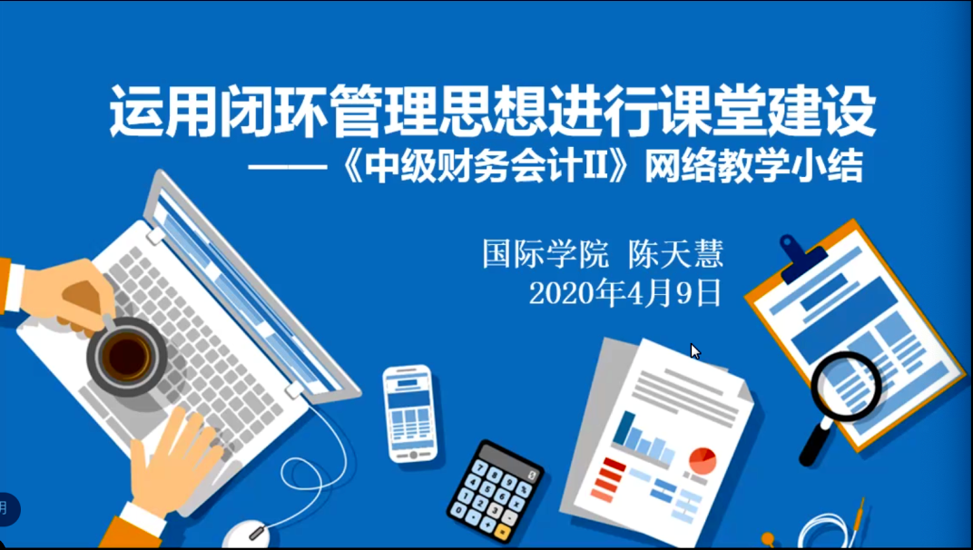 陈睿卿老师以《从三尺讲台到网上授课》为主题,以她讲授的《电子商务》课程为范本,从教学经验和教学感悟出发,进行了网络教学的经验分享。她谈到开展教学工作之前应先解决三个问题:即授课方式、使用平台和如何检验成效。经过前期准备和实践教学后,陈老师总结了直播授课与录播授课分别的优缺点;分析了对比线下授课,网络教学具有“教学内容更丰富”“ 员工讨论更活跃”的优势;也提出了现阶段网络授课存在的短板,为老师们之后的教学提供思索的方向。