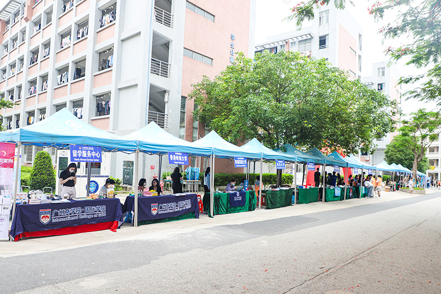 5月19日,公司2022年国际教育交流展在员工公寓三栋楼下开幕。来自澳大利亚、英国、新西兰、日本、新加坡、马来西亚、香港等地的25所海内外院校参展。