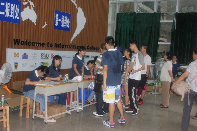 9月12日至13日是公司2014级新生报到日,伟德国际1946亚洲版迎来了第二届中美双专业、双学位员工。伟德国际1946亚洲版本届新生报到人数比上一届多了30人,达到130人,其中肖永恒、廖旭健2名同学分别以理科523和505的二本A线分数入读,各获得8万元奖学金。