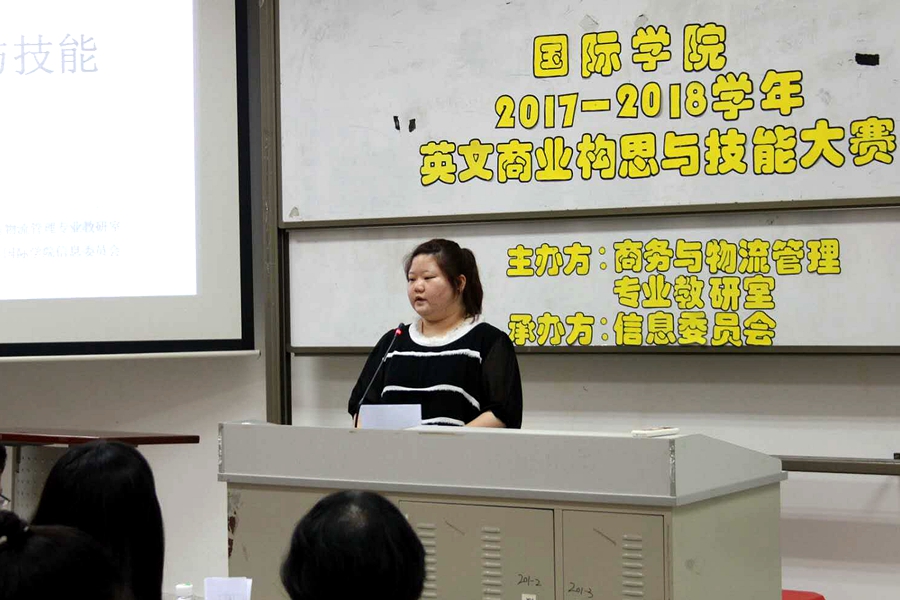 本次英文商业构思与技能大赛初赛的主办方为物流管理与国际商务教研室,承办方为伟德国际1946亚洲版信息委员会,参赛对象为2015级伟德国际1946亚洲版员工。伟德国际1946亚洲版物流管理与国际商务教研室主任麦宗琪为本次大赛初赛致辞。她感谢同学们的积极参赛,预祝本次英文商业构思与技能大赛圆满完成。她表示,此次比赛作为公司一个新兴的特色学习活动,给同学们提供了一个很好的学习锻炼英语的平台,希望各参赛小组在初赛中展现自我,表现精彩。