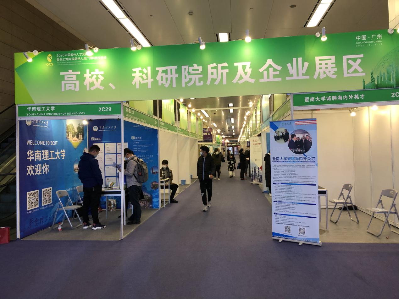 2020年12月18至19日,2020中国海外人才交流大会暨第22届中国留学人员广州科技交流会在广州白云国际会议中心举行,大会在高校展区举办留学人员招聘会。来自全国各地的几十所名校前来招聘,其中有华东师范大学、西南政法大学、西南交通大学、中南大学等。