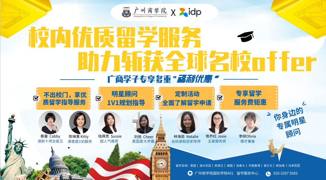 校内优质服务,助力斩获全球名校offer,广商学子尊享多重“福利优惠”。