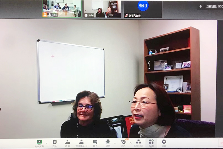 与会双方围绕如何推进项目合作发展进行了高效、建设性的沟通,进一步深化了双方的交流合作关系。在会议尾声,郭航诚挚邀请玛丽.霍金斯教授及贝尔维尤大学的其他同仁在今年访问中国,参加新一届员工的开学典礼,并期待双方早日进行线下交流,就进一步深化合作进行磋商。