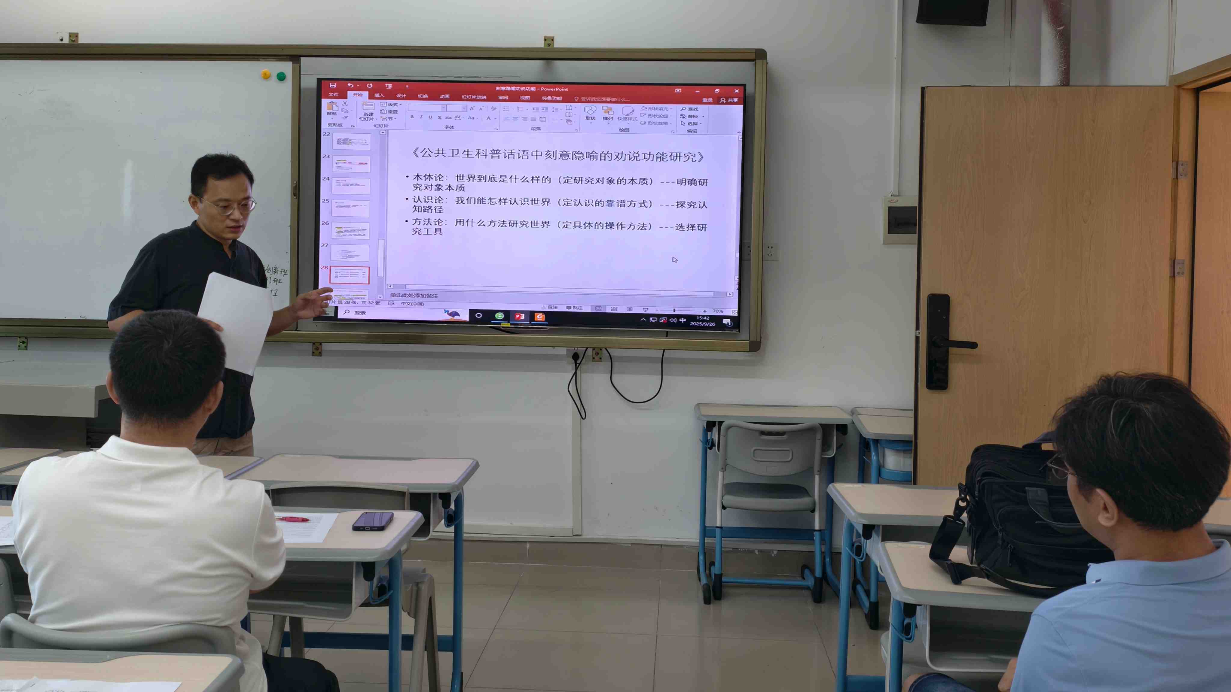 9月26日下午,伟德国际1946亚洲版2025-2026学年第一期博士沙龙在国际楼307课室顺利开展,本期博士沙龙由张艳东副教授担任主讲,采用文献导读的形式,围绕前沿文献《公共卫生科普话语中刻意隐喻的劝说功能研究》展开文献导读与深入研讨。 本期博士沙龙阅读的文献以央视新闻B站科普视频《病毒与免疫系统的战争》为案例,基于“刻意隐喻理论”,深入解析政务新媒体如何借助“战争”“城池”等隐喻,将专业医学知识转化为公众易懂的表达,有效提升科普传播效果。张艳东副教授系统阐释了文献的理论框架、研究方法与核心发现,并分享对...