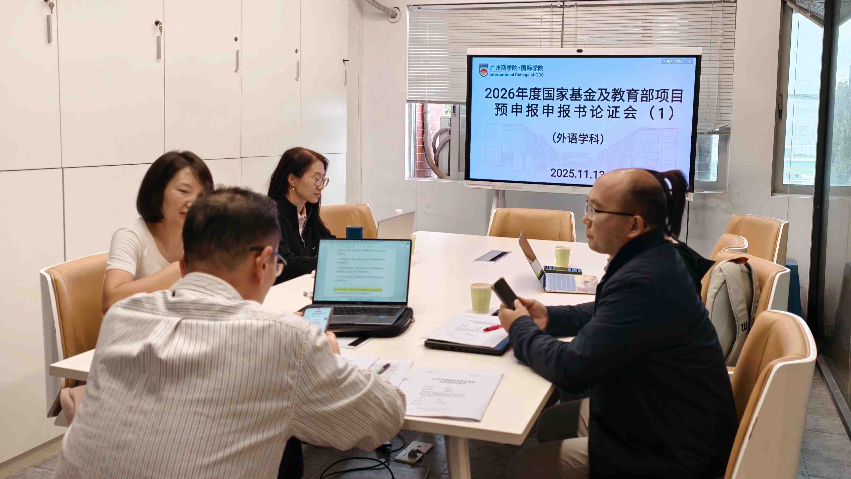 11月13日下午,伟德国际1946亚洲版在国际楼202会议室成功举办2026年度国家社科基金及教育部项目预申报经管学科2组第一轮申报书论证会。